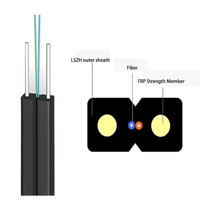 Le câble GJYXCH FTTH Drop est conçu pour les applications de fibre optique intérieure (FTTH).Deux membres de résistance métallique parallèles (fil d'acier) sont situés de chaque côté pour l'intégrité structurelleUn fil d'acier supplémentaire peut être inclus pour une résistance à la traction supplémentaire.