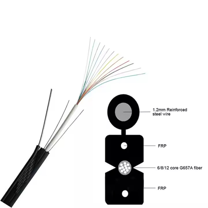 Câble de dérivation fibre optique FTTH extérieur GJYXCH 1–4 âmes G652D avec fil d'acier