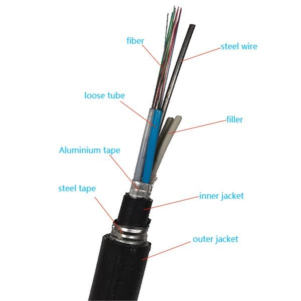 Cable à fibre optique enterré direct à double veste blindée GYTA53 GYTS53